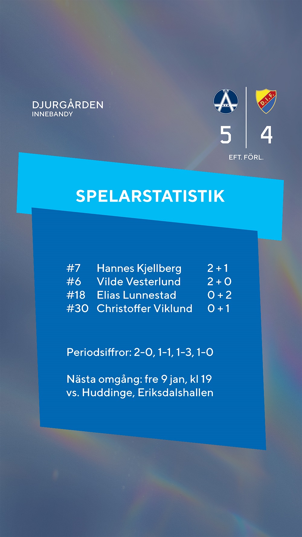 Nu tar serien ett uppehåll och vi lirar borta mot Älvsjö måndag 5/1 kl 19.30. Hoppas på att se många Djurgårdare där!