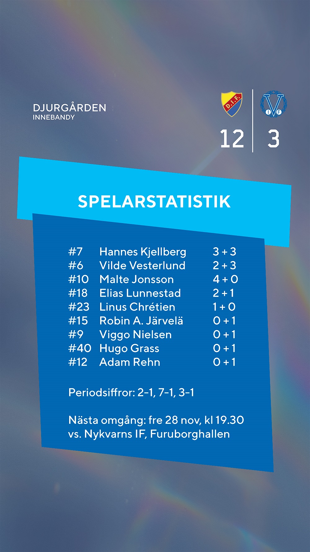 Omgång 9: Djurgårdens IF IBF – Värmdö IF: 12-3